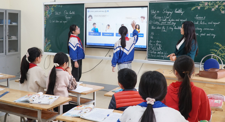 100% cơ sở giáo dục mầm non, cơ sở giáo dục phổ thông đạt chuẩn về cơ sở vật chất và thiết bị dạy học tối thiểu; các cơ sở giáo dục mầm non, cơ sở giáo dục phổ thông có thiết bị dạy học để triển khai thực hiện dạy và học một số môn bằng tiếng Anh, từng bước đưa tiếng Anh trở thành ngôn ngữ thứ hai trong trường học.