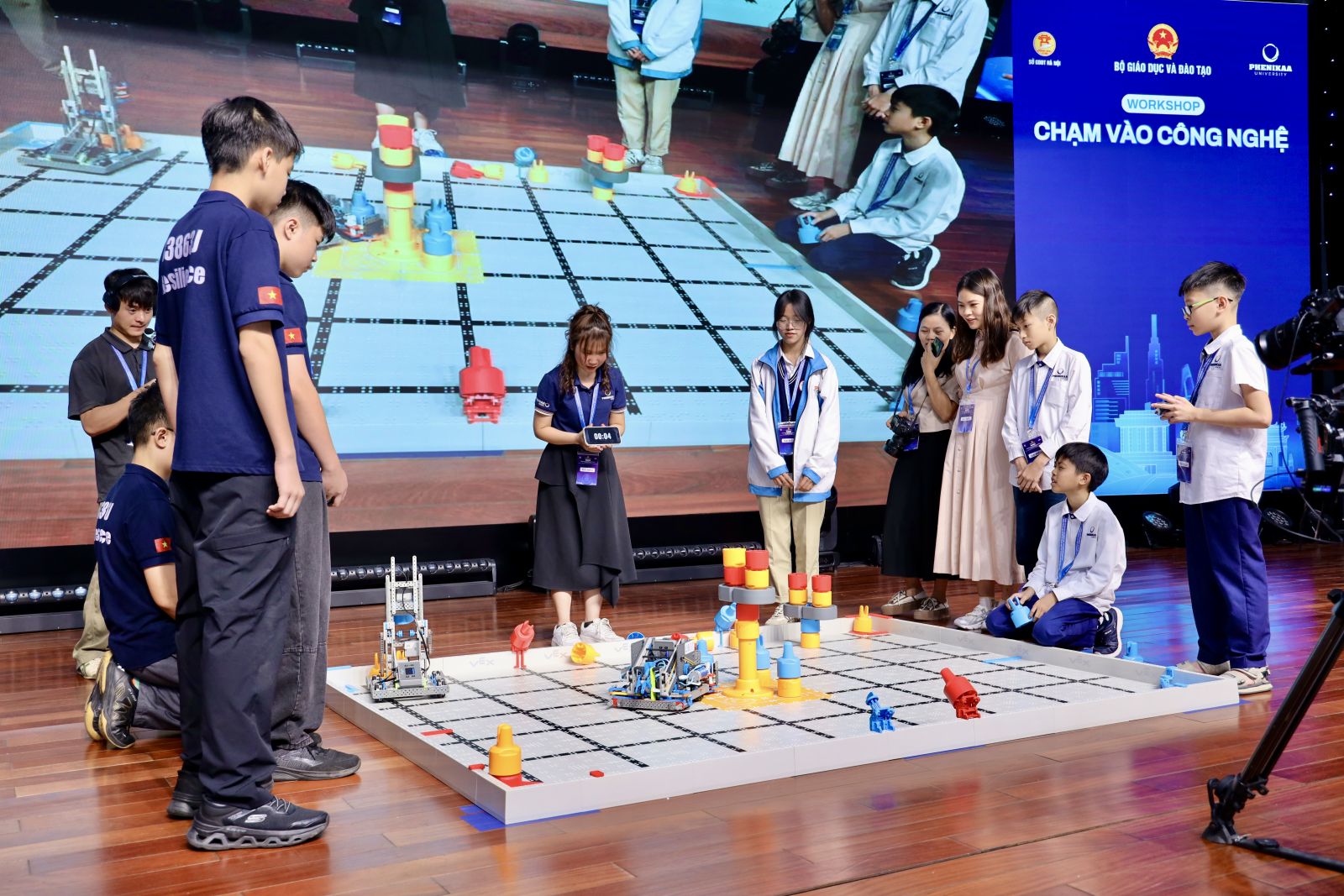 Các em học sinh tham gia workshop “Chạm vào công nghệ” tại hội thảo