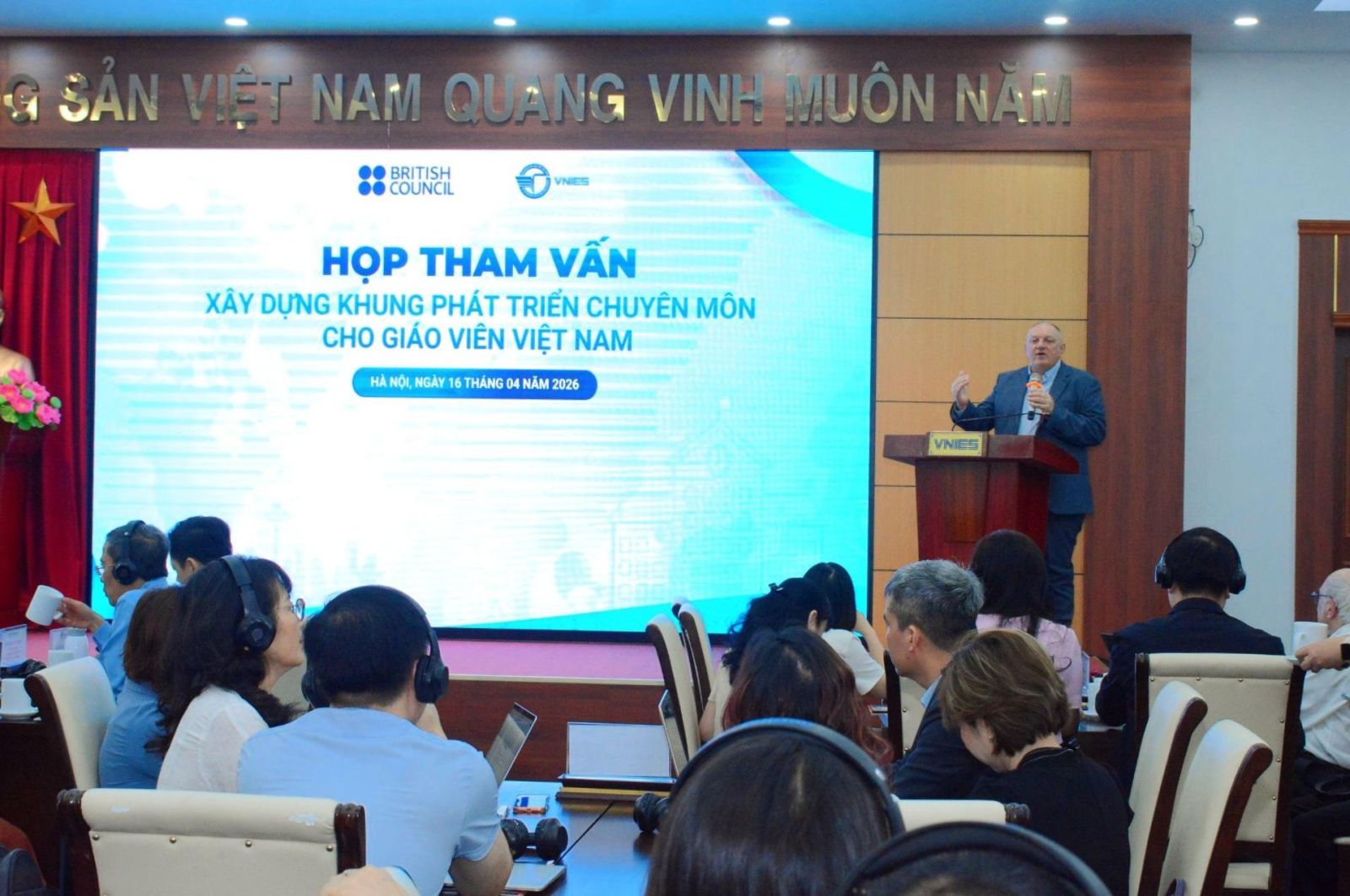 Tại hội thảo, ông Davide Guarini Gilmartin, đại diện Hội đồng Anh, đã giới thiệu tổng quan hoạt động xây dựng Khung phát triển chuyên môn cho giáo viên Việt Nam, bao gồm tiến độ triển khai, định hướng nghiên cứu và kế hoạch áp dụng trong thời gian tới. Theo đó, khung được thiết kế như một hệ thống mở, có khả năng cập nhật linh hoạt, nhằm hỗ trợ giáo viên phát triển năng lực một cách liên tục, phù hợp với yêu cầu đổi mới giáo dục.